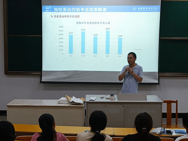 为进一步加强学风建设,帮助学生了解大学英语四、六级考试相关政策,使学生能够高效备考,提升学生英语素养和应试能力,2024年9月19日、25日在博学楼102教室公共外语部连续开设两场大学英语四、六级考试公益讲座,吸引线上线下近2000名学生参加,其中90%以上为2024级新生。
