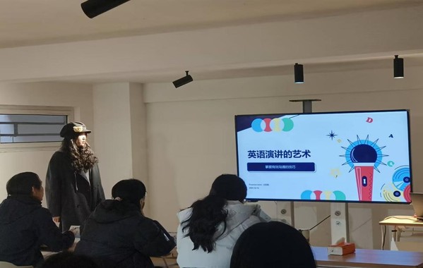 竞赛现场由各个社团学生围绕本社团的特色业务,向新生及非本社团成员培训讲解社团的特色业务和技能。吴雯靓同学的微课主题为“英语演讲的艺术”。在社团指导老师刘蕾老师的指导下,吴雯靓同学生动地向评委老师及同学们讲解了如何掌有效的英语演讲技巧,体会英语演讲的艺术。