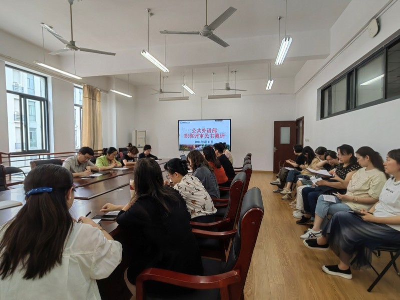 根据学校《关于做好2024年度中、高级专业技术资格评审(转评、推荐)工作的通知》要求,2024年5月21日下午,公共外语部在国教304召开了2024年职称评审民主测评会议。会议由公共外语部党总支书记、主任熊英主持。