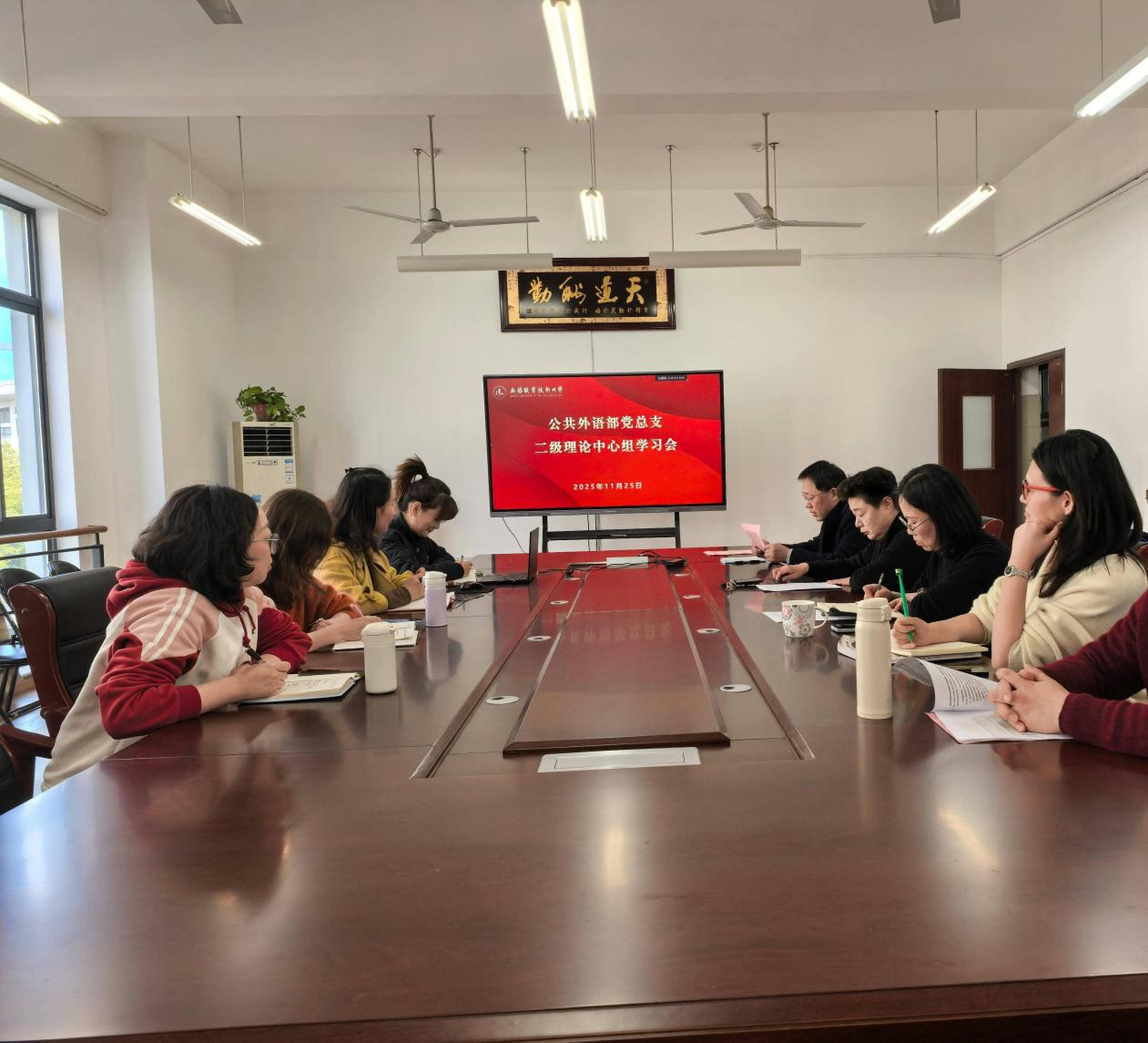 11月25日下午,公共外语部党总支在国际交流中心304会议室召开了二级理论学习中心组十一月份学习会,以“学习贯彻党的二十届四中全会精神 推动部门事业高质量发展”为主题,深入学习领会全会核心要义与实践要求,结合公共外语教学工作实际研讨落实举措。会议由党总支书记熊英主持。