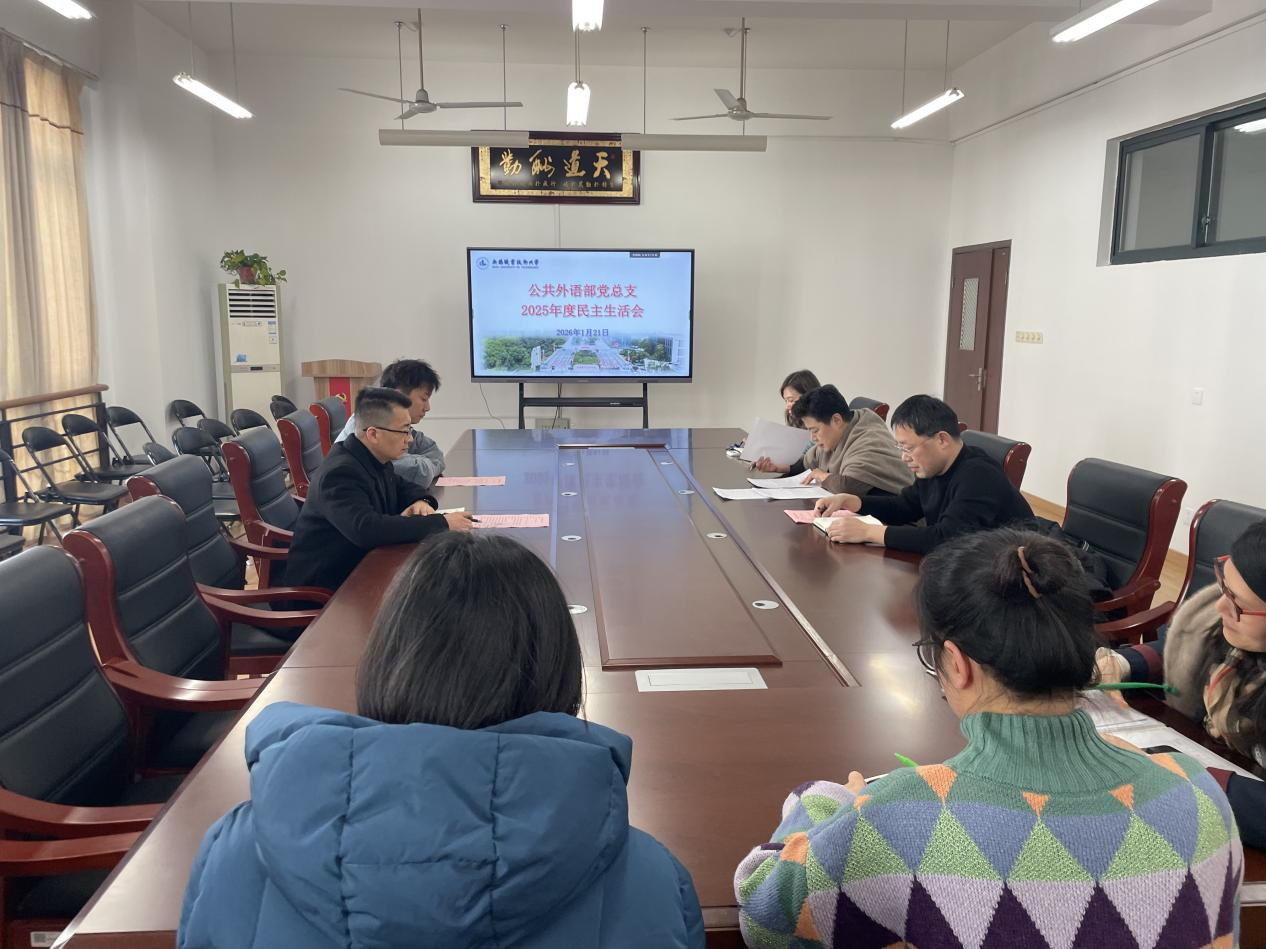 1月21日下午,公共外语部在国际交流中心304会议室召开了2025年度党员领导干部民主生活会。校纪委书记李衔到会指导并作点评讲话。公共外语部领导班子全体成员、三级机构负责人参加会议。会议由党总支纪检委员徐优明主持。